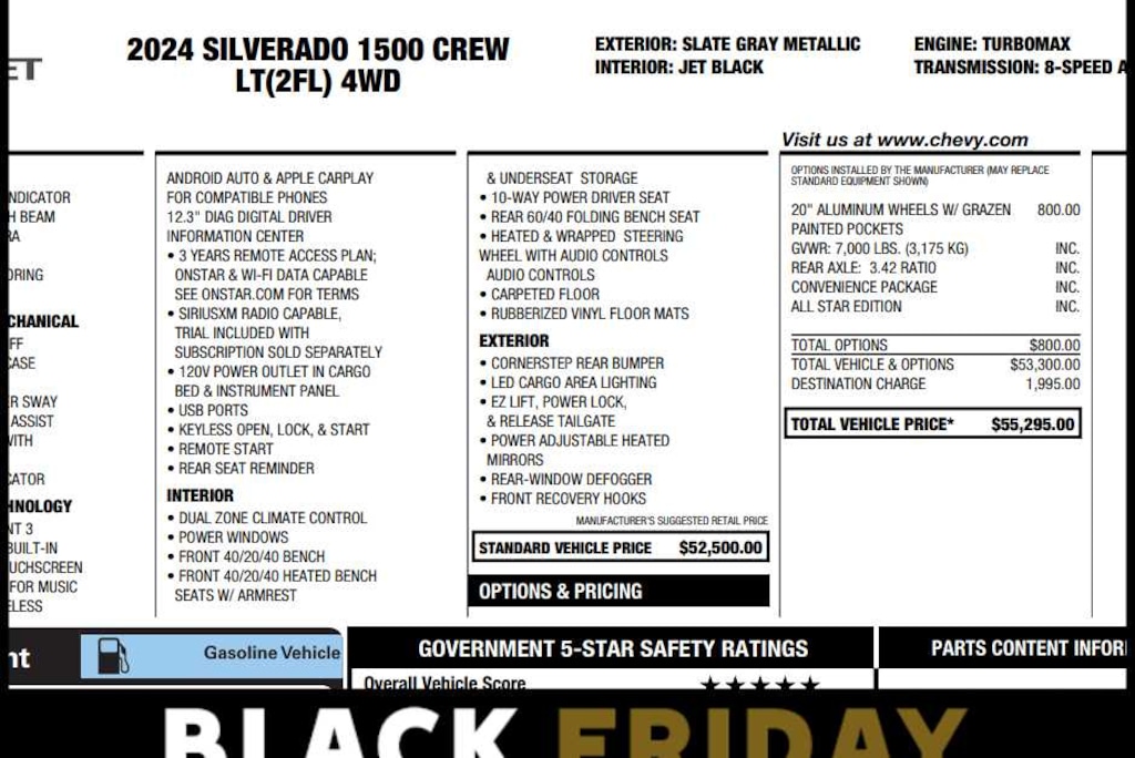 with machine face and Grazen Painted pockets, with Google built-in compatibility (select service plan required, terms and limitations apply) including navigation capability, 13.4" diagonal HD color touchscreen, includes multi-touch display, AM/FM stereo, Bluetooth® streaming audio for music and most phones; featuring Wireless Apple CarPlay® and Wireless Android Auto® capability for compatible phones, advanced voice recognition, in-vehicle apps, personalized profiles for infotainment and vehicle settings (STD), (310 hp [231 kW] @ 5600 rpm, 430 lb-ft of torque [583 Nm] @ 3000 rpm) (STD), with overdrive and tow/haul mode. Includes Cruise Grade Braking and Powertrain Grade Braking (STD).