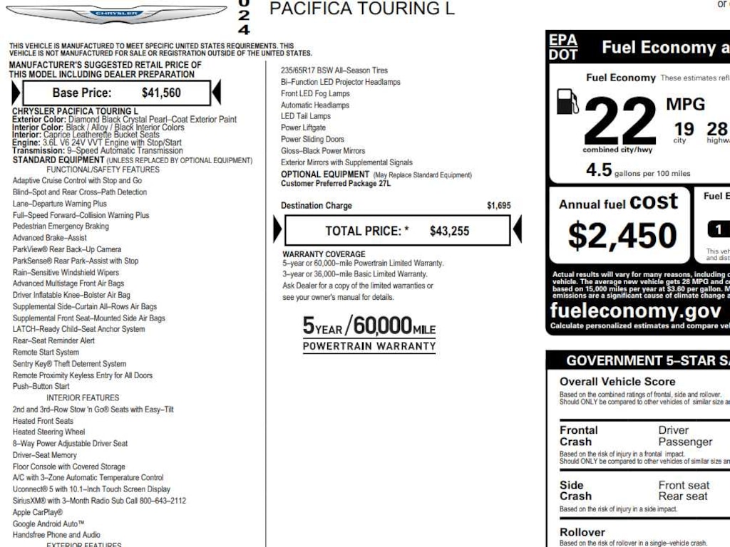 This is my eighth Chrysler minivan. All of them have gone well over 100,000 miles with no problems with engine or transmission. My 2002 went 275 miles with no problems and was retired when the rust took over. This Pacifica is very quiet and a pleasure to drive. The gas mileage is a bit less than the 2014 Town and Country it replaced. I have three complaints on this van. The driver's headrest pushes my head too far foreword. I use a cushion behind my back so that I can sit with my head up straight. The dash came loaded with shiny surfaces that had to be covered with glare free material and flat black paint. This has been a problem with these vans since 2006. The vision at corners to the passengers side is limited. A lot of care must be used at corners to make sure that there are no vehicles coming from the right. This touring L Pluss has many features that make driving safer.… - 5.0