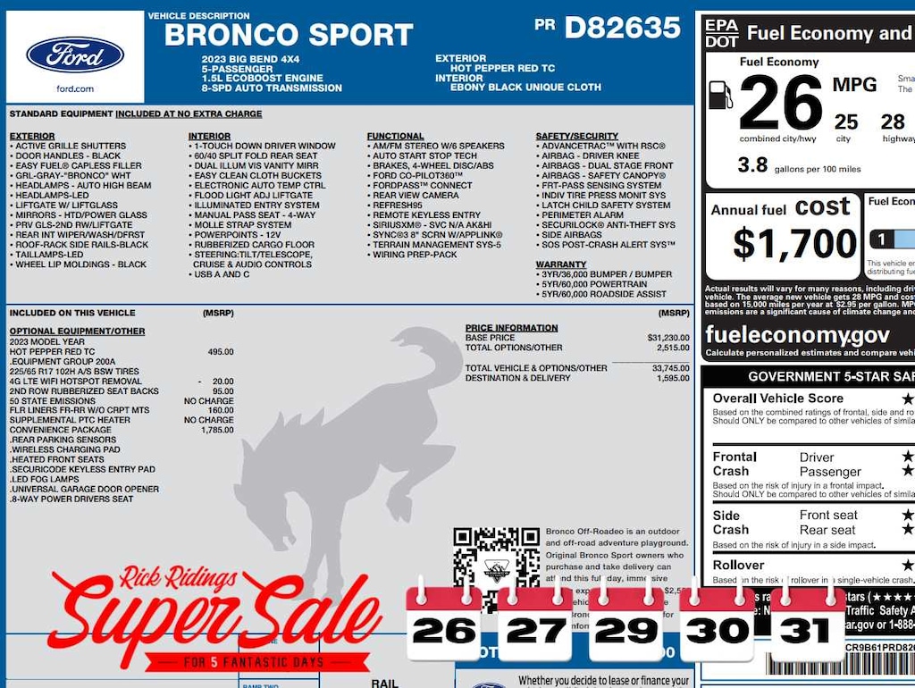 Back-Up Camera, Satellite Radio, iPod/MP3 Input, Onboard Communications System, Aluminum Wheels Ford Big Bend with Hot Pepper Red Tinted Clearcoat exterior and Ebony interior features a 3 Cylinder Engine with 181 HP at 6000 RPM*.