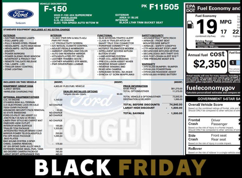 Leather Seats, Heated Driver Seat, Cooled Driver Seat, Premium Sound System, Satellite Radio Ford LARIAT with Area 51 Blue exterior and Black interior features a 8 Cylinder Engine with 325 HP at 5000 RPM*.
