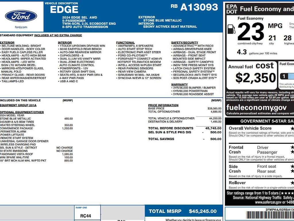 Heated Driver Seat, Back-Up Camera, Satellite Radio, iPod/MP3 Input, Onboard Communications System. Ford SEL with Stone Blue Metallic exterior and Ebony interior features a 4 Cylinder Engine with 250 HP at 5500 RPM*.